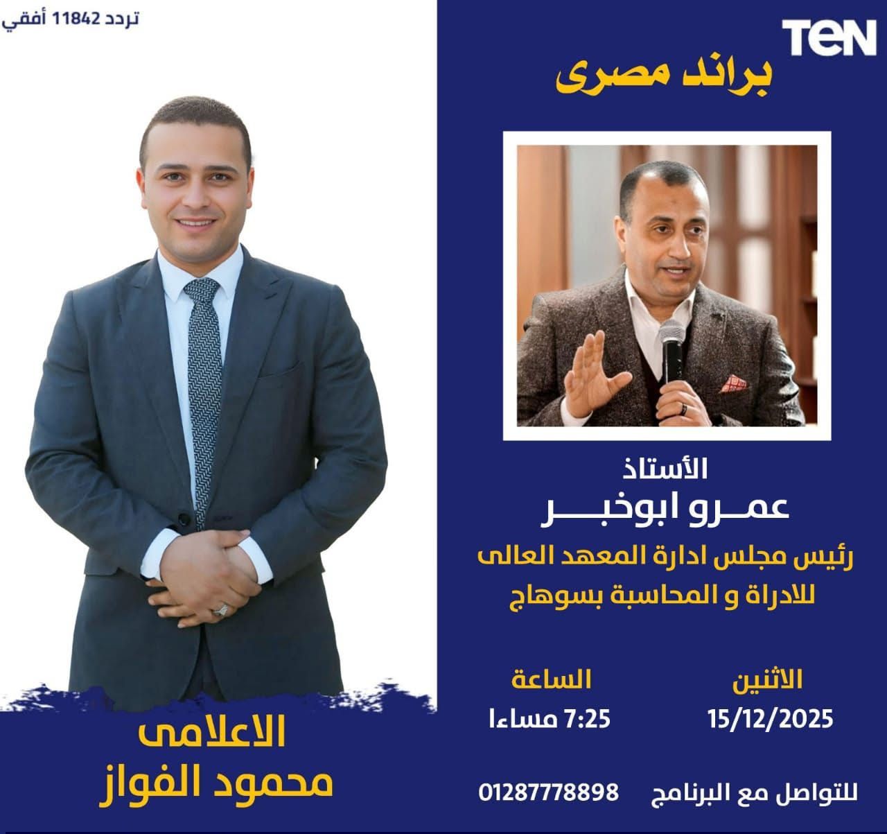 انتظرونا في تغطية إعلامية خاصة مع الأمين العام للمعهد ، مع برنامج براند مصري على قناة TEN.